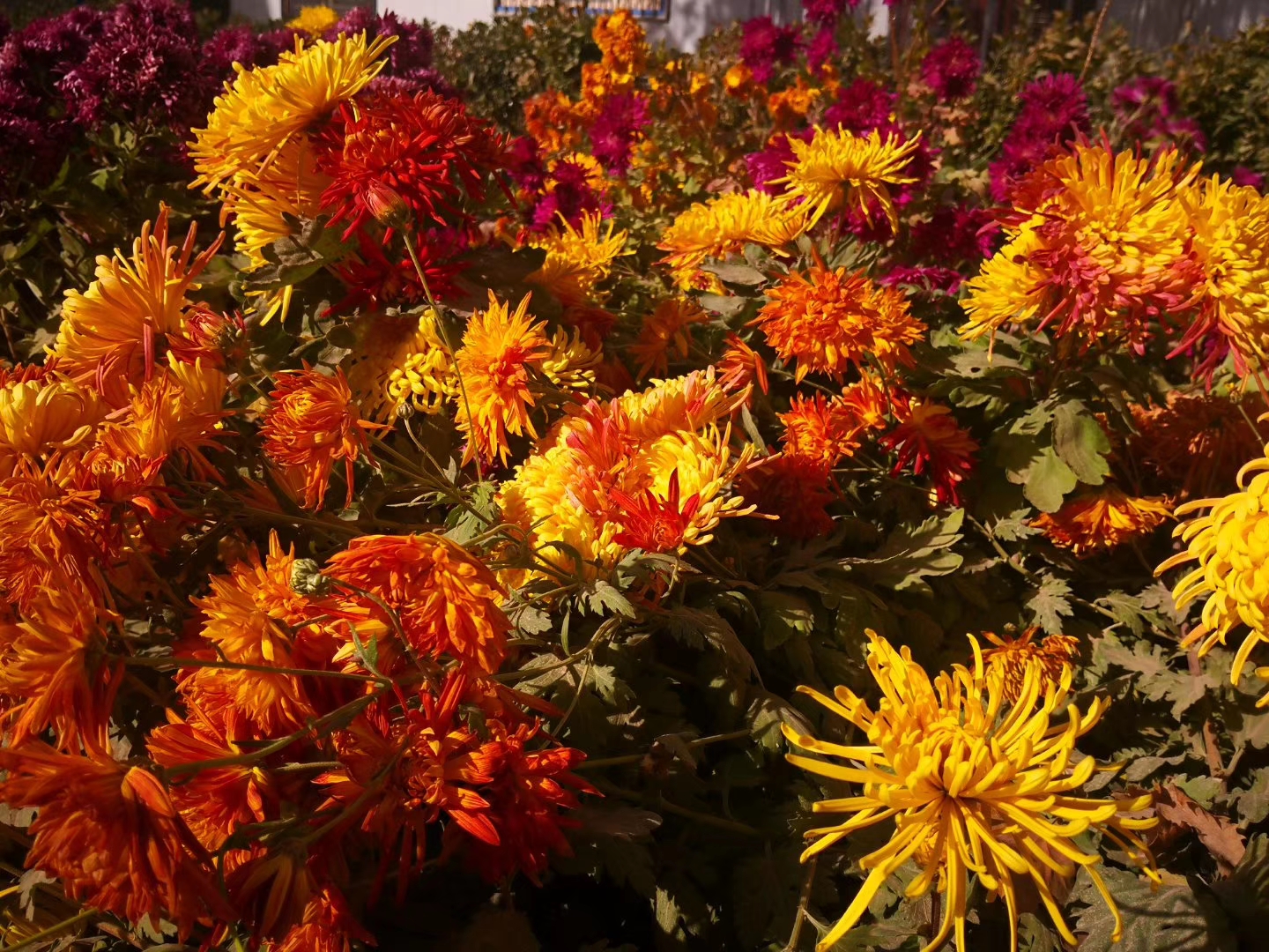 穿过那片落叶满地的园子,看见了生机勃勃的花池。在飘零的季节,这里却热情洋溢。这是菊的世界,黄色、紫色、粉色、橙色…水灵灵地张扬着,与这干燥,与这扬尘,与这寂寥,全然不搭调。她们好像一群来自南国的游客,无意中装点了塞外的秋。支教的日子平凡而充实,当如这满池的秋菊,努力生长之后,就兀自恣意,不在乎何时何地。落叶有落叶的归宿,枯草有枯草的家,各有各的潇洒。他们有曾经的蓬勃,也有来年的绿色。