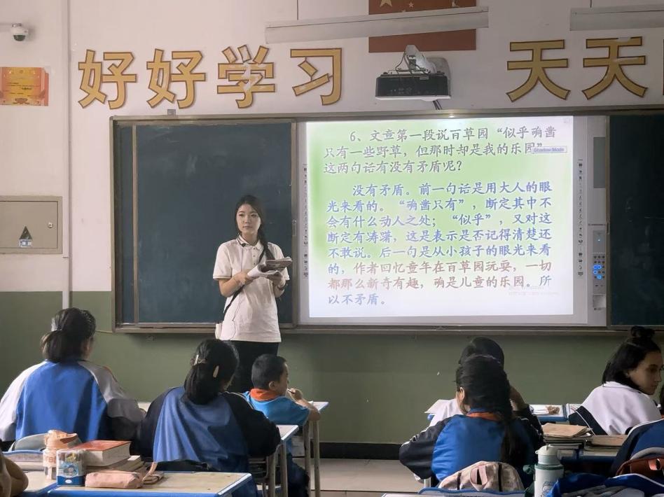 我任教于齐鲁疏勒二中,担任初一的语文教学工作,经过一个月的锻炼我已从一个上课充满紧张与不安的“小女孩”变成了一个可以流利自如的“老师”。面对一个个求知若渴的眼神,他们每次上课前大声地“老师好”,抢答问题时举得高高的小手……我也更加的明白自己责任的重大,同时也更加坚定了我的支教信念,希望用我自己所学的知识去帮助这些可爱淳朴的孩子们,去浇灌这些边疆的花朵,让它们尽情绽放。同时我也在用青春和热情,在这片广袤的土地上书写着动人的篇章。我们不仅是知识的传播者,更是希望的播种者。在他们的努力下,新疆的荒漠正逐渐变为充满生机的绿洲,教育的春天在这里悄然绽放。