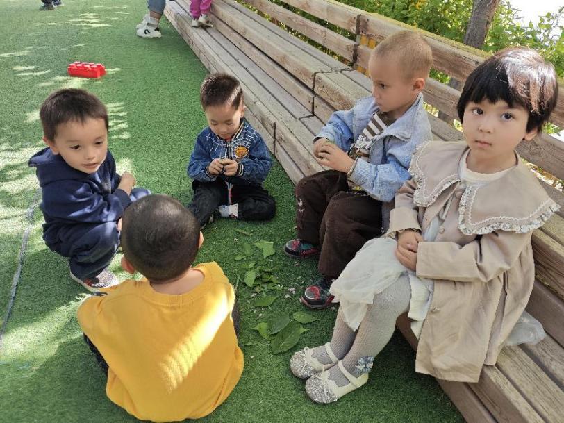 孩子们小心翼翼的观察着,生怕伤害到这幼小的蚕宝宝。“孩子们,户外活动时间结束了,我们该回教室啦!”我从地上捡起一片树叶,等待蚕宝宝爬到上面,在孩子们的注视下把蚕宝宝放到了草丛里,看那只米粒大的生命缓缓挪进草影深处。回教室时,古丽孜热悄悄对我说:“老师,我觉得蚕宝宝像棉花糖一样可爱,我明天还想和他玩!”