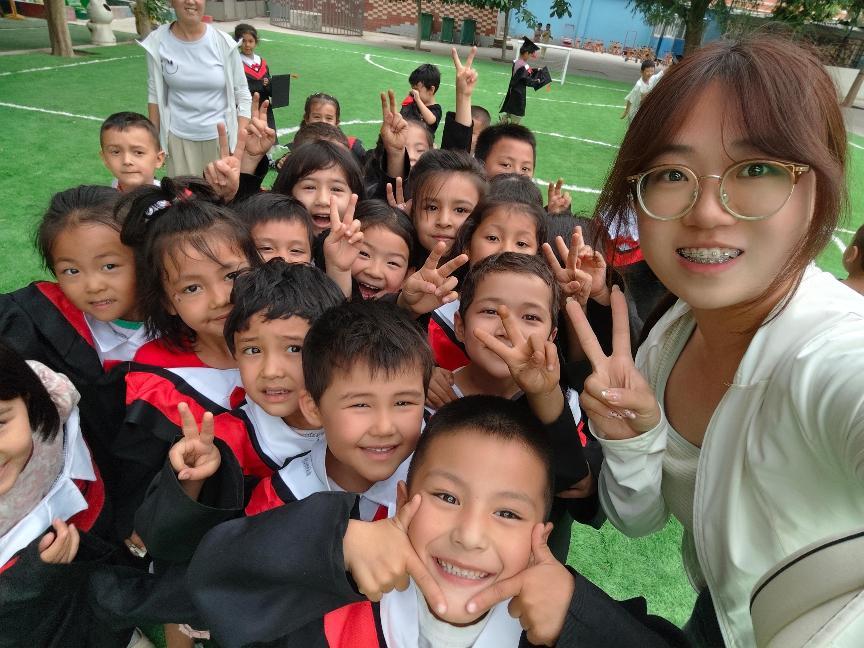 在这支教的日子里,看似平凡的陪伴,或许正悄悄编织着孩子们心中的光。曾经觉得漫长的支教时光,此刻竟像指缝间抓不住的流沙。而当初那个模拟授课录视频要一遍遍重来的小女孩,如今也能从容地接住孩子们天马行空的“为什么”。新疆的风沙里,我们种下桑苗,也种下对未来的期待——有些成长,本就需要以温柔浇灌,以岁月守候。