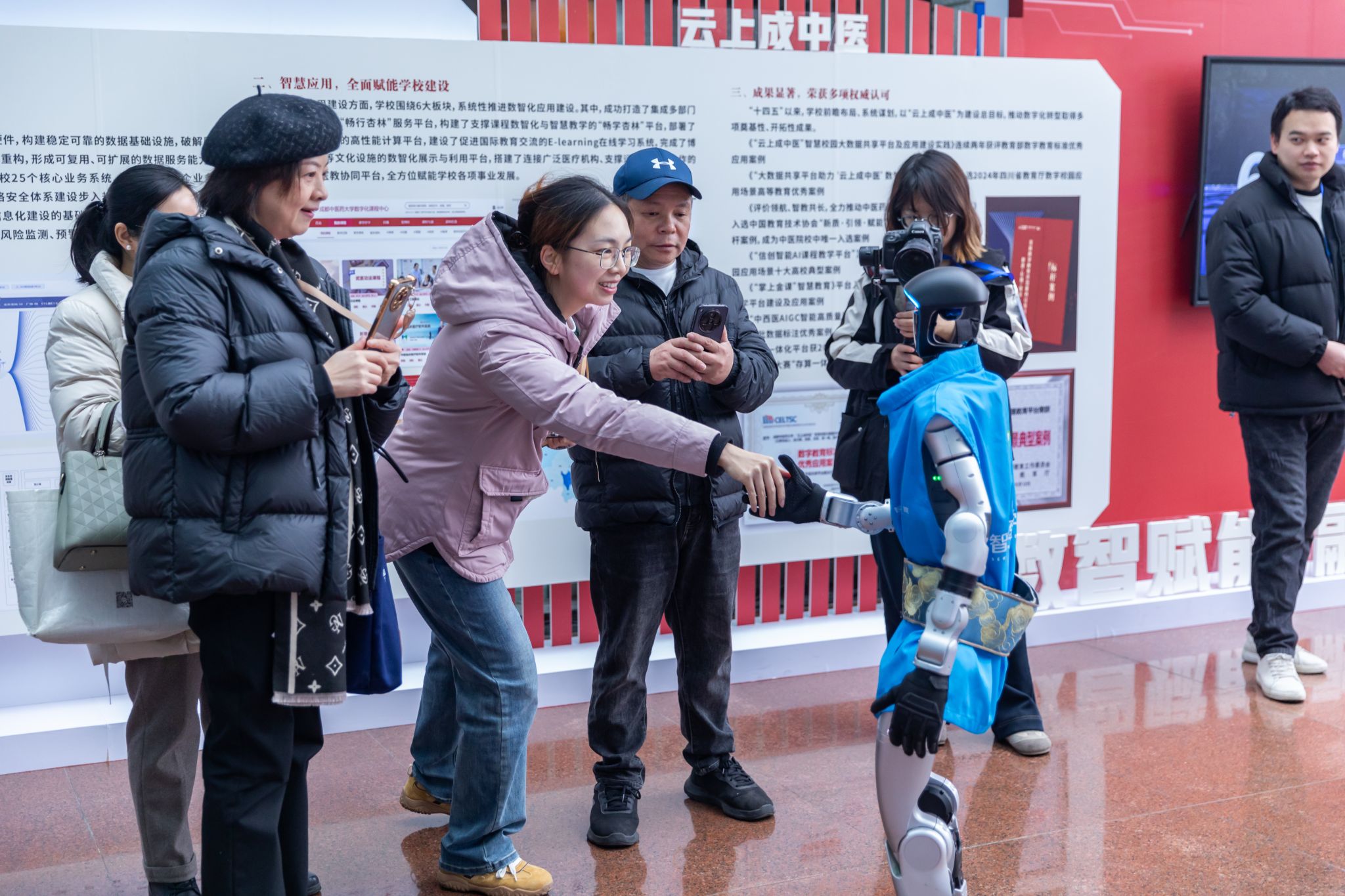 张泽钧强调,全体成中医人要胸怀大局、把握时代大势,在技术驱动推进数智化转型的同时坚守立德树人初心,服务教育、成就师生,在数智浪潮中把稳方向。要聚焦重点,彰显进取姿态,积极探索新型数智化教育模式,加大优质数字资源供给,在时代浪潮中主动求变。要激活创新,展现融合智慧,重点培养一批深谙岐黄之道、又善驭数字之器的复合型师资队伍,加快构建配套制度体系,在数智化建设中锐意革新。要筑牢根基,坚守安全底线,构建“技术防护、制度保障、文化培育”的安全体系,切实保障师生隐私安全、系统运行稳健、学术数据可靠保密,在数智化事业中防微杜渐。