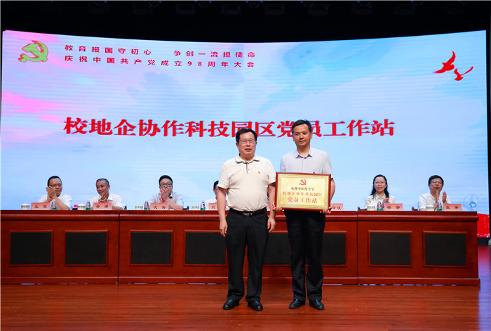 6月27日下午,学校在温江校区百会堂隆重举行庆祝中国共产党成立98周年大会。会议的主题是:教育报国守初心,争创一流担使命。校领导刘毅、余曙光、沈涛、郑学斌、徐廉、杨静,中层领导干部,分党委、党总支委员,党支部书记代表,受表彰的先进党组织负责人、优秀共产党员和优秀党务工作者,师生党员代表,民主党派基层组织、知联会、侨台联负责人等近400人参加会议。会议由学校党委副书记、校长余曙光主持。