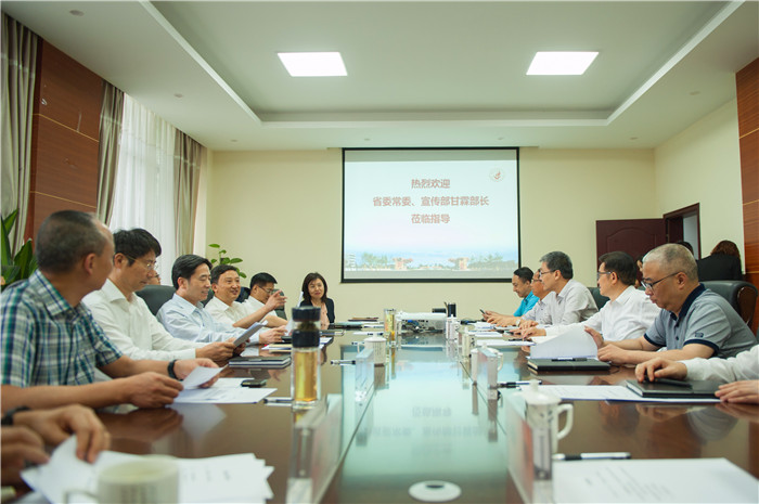 7月11日,省委常委、宣传部部长甘霖一行来到伟德十二桥校区,开展中华优秀传统文化传承与发展工作的专题调研。省委宣传部副部长陈华,省教育厅党组书记、厅长朱世宏,省文化厅党组书记、厅长、省文物局局长周思源,省中医药管理局党组书记、局长田兴军,成都市委常委、宣传部部长田蓉,市委宣传部副部长母涛,成都市文广新局党组书记、局长师江,金牛区区委书记金城,成都博物院院长、成都文物考古研究所所长王毅,学校党委书记刘毅、校长余曙光、副校长杨静、梁繁荣教授及相关部门、学院领导出席会议。