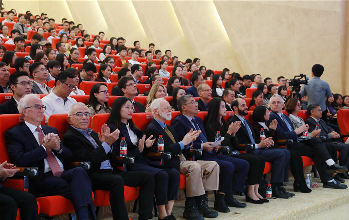 活动现场大咖云集,1989年诺贝尔生理学或医学奖获得者、美国科学院院士、美国艺术与科学院院士、英国皇家科学院院士毕晓普(J Michael Bishop)教授,苹果商标设计者简诺夫(Rob Janoff)先生,英国皇家科学院院士劳埃德(Robert Lloyd)教授,英国皇家科学院院士奈史密斯(James Naismith)教授,以及Exelixis公司企业营运执行阿夫塔布(Dana Aftab)副总裁、斯坦福大学肿瘤学研究所费尔舍(Dean Felsher)所长、犹他大学细胞反应及调控项目威尔姆(Alana Welm)主任、南京医科大学发育遗传系史蒂文(Steven)主任等重量级嘉宾专程前往伟德源自英国1946,见证中西医强强联合,开启防治癌症研究新篇章。