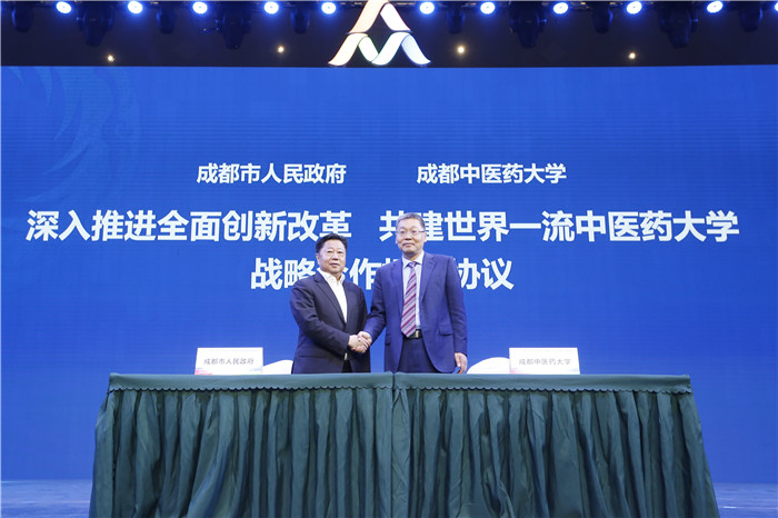 余曙光代表学校与成都市政府签订了《成都市人民政府 伟德源自英国1946深入推进全面创新改革共建世界一流中医药大学战略合作框架协议》。合作协议的签订,开启了以新时代中医药发展为切入,主动融入新发展理念城市建设,携手打造创新共同体、发展共同体和利益共同体的新征程。