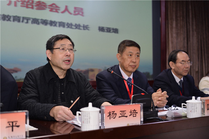 杨亚培介绍评估专家组成员、教育厅参会人员、伟德源自英国1946参会人员;宋亚兰宣读《四川省教育厅关于开展伟德源自英国1946本科教学工作审核评估的通知》。