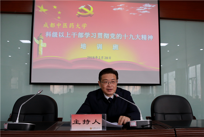 为学习宣传贯彻好党的十九大精神,真正把思想和行动统一到党的十九大精神上来,2月28日,新学期开学前一天,学校党委在十二桥校区图书馆报告厅举办科级以上干部深入学习贯彻党的十九大精神培训班。培训由学校党委书记刘毅主持。校领导、全校230多名处科级干部参加学习。