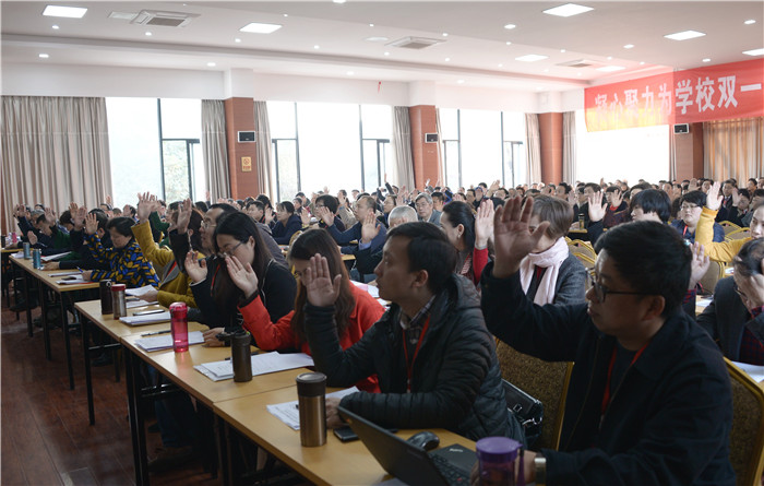 大会以举手表决方式通过了《大会决议》。决议指出,《学校工作报告》对一年来学校的工作进行了全面总结,对现阶段存在的主要问题和差距进行了认真梳理,提出了2018年是学校改革发展“双一流”建设的攻坚之年。大会充分肯定了学校2017年的工作成效,同意《学校工作报告》提出的2018年工作主要任务,对学校工作的精心部署。大会原则通过《学校2017年财务预算执行情况和2018年财务预算安排情况的报告》《学校教代会/工会工作报告》《校工会2017年度财务审计报告》《上次代表大会以来教代会提案工作报告》。