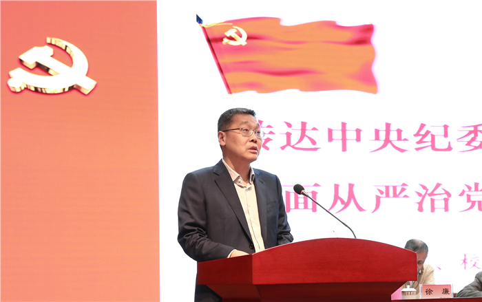 ”,切实增强全面从严治党紧迫感。报告回顾学校2017年全面从严治党取得的新进展新成效:把党建贯穿立德树人全过程,确保风险防控“治未病”,落实八项规定精神强监管,坚持挺纪在前重遏制,匡正选人用人强导向。报告深入分析了学校全面从严治党工作中存在的问题。二要啃“骨头”,扎实推进全面从严治党主要任务。报告用六个“关键词”概括学校2018年全面从严治党工作任务:校内巡察——政治建设摆在首位,正风肃纪——作风建设持之以恒,四种形态——纪律建设持续加强,标本兼治——制度建设长抓不懈,牵牛鼻子——两个责任落到实处,队伍建设——打铁必须自身硬。三要严“规矩”,深入落实全面从严治党基本要求。一要提高政治站位,二要做好调查研究,三要实施对症下药。