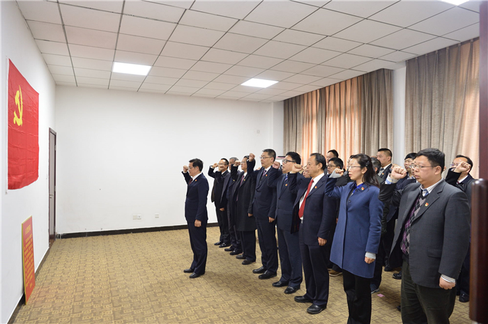 随后,举行重温入党誓词仪式。全体委员面对党旗,举起右拳,庄严宣誓,刘毅领誓。