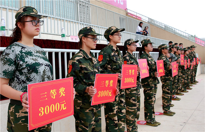 随后举行了新生军训开训仪式。军训工作领导小组组长、军训旅政委延建明宣布开训,学校党委书记刘毅为军训旅授旗,预高师一团政委吴晓林上校接旗,2017级本专科新生将参加为期11天的军训。