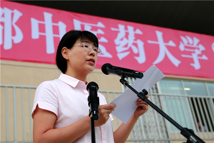 党的十九大代表、药学院中药药理系主任、博士生导师曾南教授作为教师代表希望全体新生站在新起点,整装再出发。她寄语新同学:“做一个诚信文明的人,你将会更有尊严,更受欢迎;做一个有理想追求的人,你的人生将会更加精彩,更加丰满;做一个勤奋踏实的人,你将会更加成功,更加幸福。”