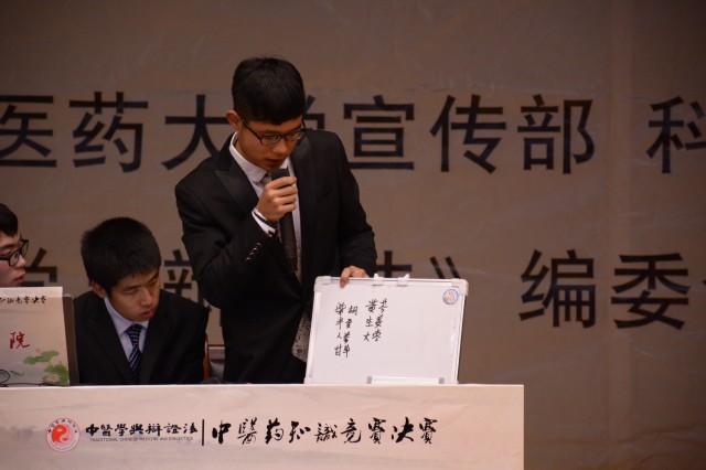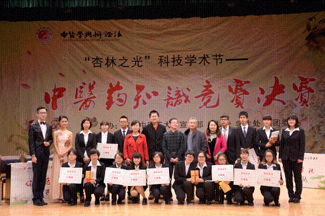 12月3日,为传播中医药传统文化,提高学生对中医药知识“青春作赋,皓首穷经”的热情,由党委宣传部、学生处、科技处以及校团委主办,《中医学与辩证法》编委会承办了2015年“杏林之光”科技学术节开幕式暨第十二届中医药知识竞赛决赛。校党委副书记、副校长沈涛,学生处处长叶军,党委宣传部副部长罗晓文,学生处副处长、校团委书记佟枫等出席活动。