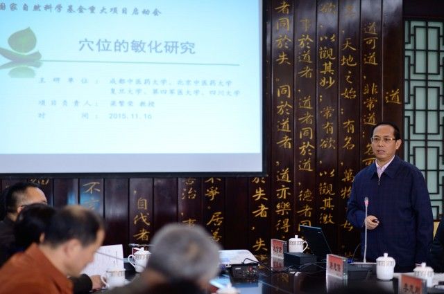 启动会上,按照重大项目执行与管理等有关要求,梁繁荣教授对项目吸收评审意见后研究方案的完善情况和研究计划进行了报告。课题负责人梁繁荣教授,李志刚教授(北京中医药大学),唐惠儒教授(复旦大学),熊利泽教授(第四军医大学),孙鑫研究员(四川大学)分别就“穴位敏化现象和规律的临床研究”、“穴位敏化的客观显像研究”、“敏化穴位的微理化环境变化的系统生物学机制”、“穴位敏化的调控机制研究”、“穴位不同功能态的临床应用研究”5个课题报告了具体的研究方案和研究计划安排。