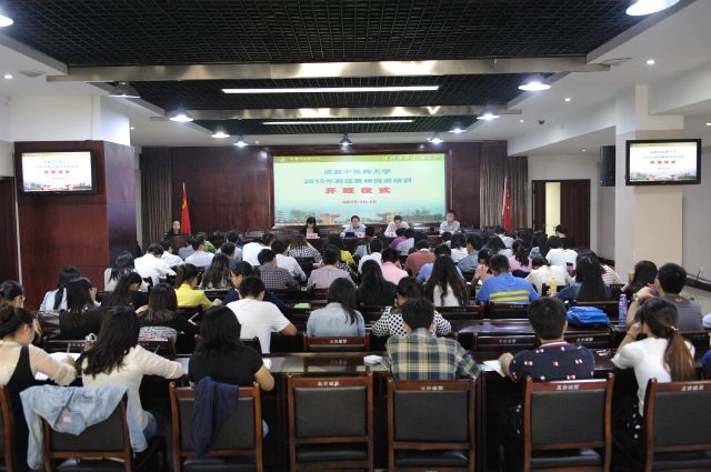 10月15日,学校2015年新进教师岗前培训班在温江校区开班。党委副书记、副校长沈涛、人事处相关人员、2015年全体新进教师80余人参加开班仪式。仪式由人事处处长祝捷主持。