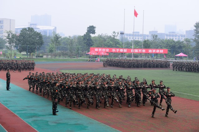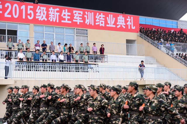 9月20日,2015级新生军训结业典礼在温江校区体育运动场举行。校领导马跃荣、梁繁荣、沈涛、延建明,中国人民解放军78636部队谈勇大校、袁德友中校、孔燕林少校等出席,学校武装部、学生处、信息中心、各参训学院领导参加结业典礼。结业典礼由延建明主持。