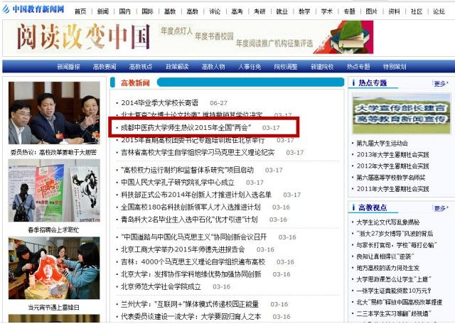 中国教育新闻网讯(记者 李益众)3 月3 日到3月15日,十二届全国人大三次会议和全国政协十二届三次会议(以下简称“两会”)隆重召开。身处伟德源自英国1946校园的师生也时刻关注着两会的进程,从李克强总理的政府工作报告到人大代表和政协委员的议案、提案,老师和同学通过不同的形式关注着“两会”,校园里到处充满着对“两会”探讨和思考的氛围,“两会”的各种热点话题也成了成中医师生课前课后要摆的“龙门阵”,一股两会风正在校园里吹拂。