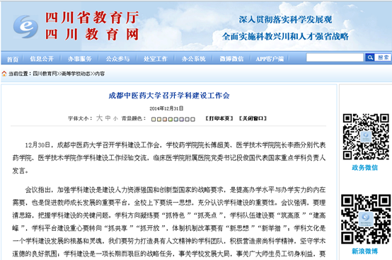 资料显示,十一五以来,伟德源自英国1946坚持以国家重点学科建设为核心、省级重点学科建设为抓手,进一步突出学科特色,凝练学科方向,打造创新团队,构筑创新平台,提升整体水平,学科建设工作取得长足进展。目前学校拥有国家级一级重点学科一个,国家级二级重点学科三个;国家中医药管理局重点学科二十三个,四川省一级重点学科三个,四川省二级学科十八个,四川省重点学科建设项目三个,四川省医学重点学科四个,成都市医学重点学科两个,校级重点和特色学科十二个。
