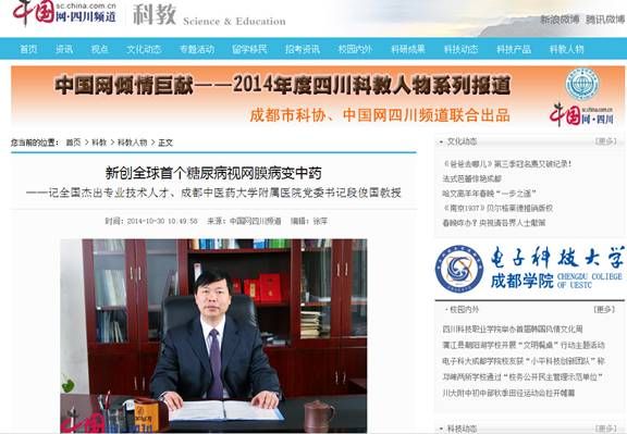 中国网四川成都10月30日讯(记者 诸泽海)近二十年专注中医药临床评价方法和糖尿病微血管病变与视力保护研究,引领中医理论重大突破,步入国际领先水平。2013年度四川省科学技术奖励大会上,“糖尿病微血管病变中医症效基础与临床循证研究”项目获得四川省年度科技进步奖特等奖。9月22日,第五届全国杰出专业技术人才表彰大会在北京人民大会堂举行,他再获殊荣。他就是伟德源自英国1946临床医学院/附属医院党委书记段俊国教授。