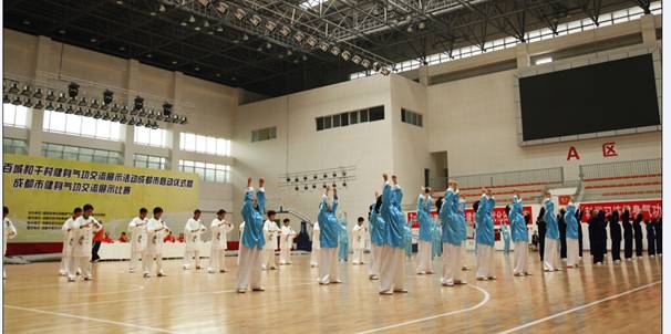 9月5日上午,由国家体育总局健身气功管理中心和成都市体育局主办、成都市武术跆拳道运动管理中心承办、成都市武术运动协会协办的“2014年全国开展百城和千村健身气功交流展示活动成都市启动仪式暨成都市健身气功交流展示比赛”在伟德体育馆举行。来自成都市各区市县的31支代表队,近400名运动员分别参加了集体和个人易筋经、五禽戏、六字诀、八段锦、大舞五种功法的展示。