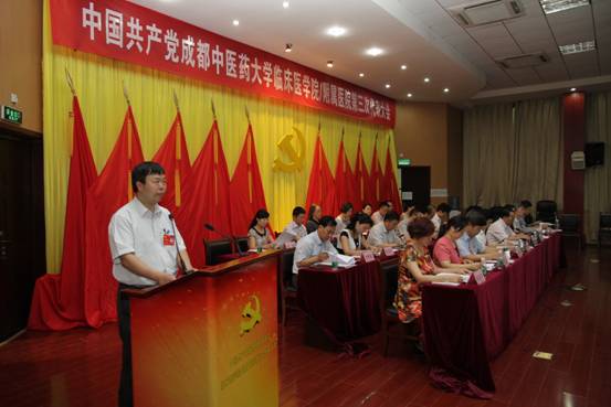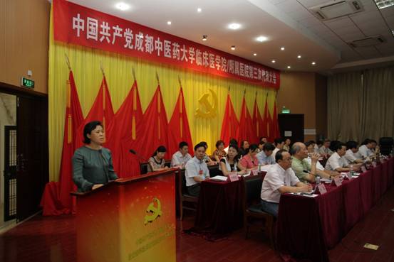 学校党委书记马跃荣、校长梁繁荣,省卫计委党组成员、机关党委书记冉茂琴,省中医药管理局党组成员、机关党委书记罗建,院党委书记段俊国,院长钟森,党委副书记谭生奎、田理,副院长谢春光、张勤修、蒋运兰以及党代会正式党代表、列席代表、特邀嘉宾,省中医药科学院、省骨科医院、省中西医结合医院、省第二中医医院、绵阳市中医医院,学校党委组织部、基础医学院、药学院、针灸推拿学院/第三附属医院、护理学院、第二临床医学院/第二附属医院党委负责人等190余人参加大会。大会开幕式由钟森主持。省中医药科学院、泸州医学院附属中医医院发来贺电,对大会的召开表示热烈祝贺。
