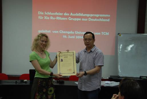 6月19日,来自德国帕骚中医短期培训班毕业典礼在国际教育学院举行。国际教育学院院长姚洪武、学院相关老师、部分翻译及全体学员参加了毕业典礼。
