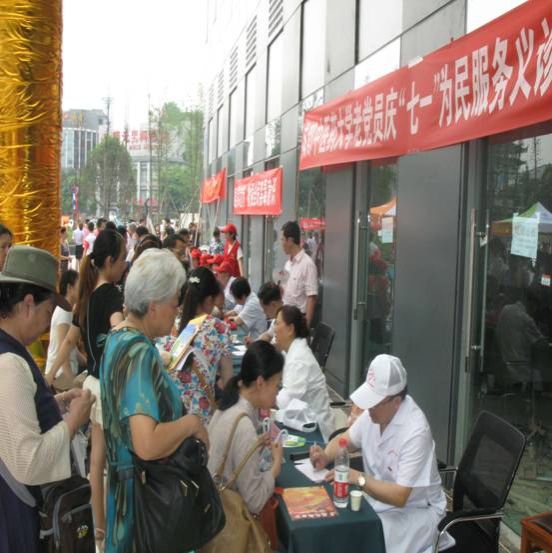 学校名老专家李明富,内科专家姚昌钊,妇科专家傅春华、齐素珍,骨科专家阙再忠等老师和临床、针灸推拿专业的学生组成党员义诊服务队为社区群众服务。现场气氛热烈、群众热情高涨。专家们顾不上喝水,顶着烈日,耐心细致为群众把脉、开药,解答疑难问题。临床、针灸推拿专业的同学们为前来的群众提供测血压、推拿和导诊服务。在短短的2小时内,专家们为百余名社区群众义诊,受到群众好评。