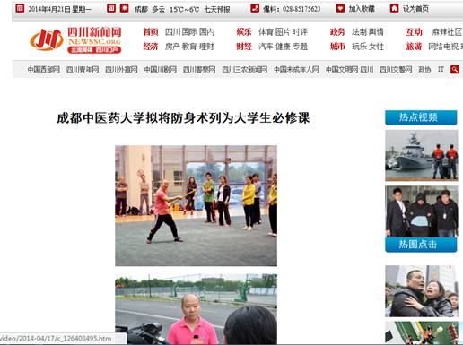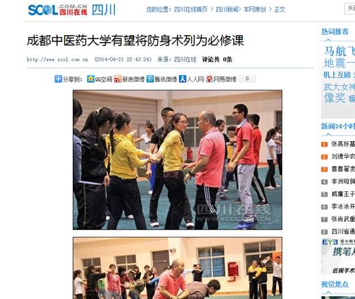 学校率先开展大学生防身技能培训受到媒体关注关注,人民网(视频)、中国网、四川新闻网、四川在线、四川经济日报网等分别来校采访报道。