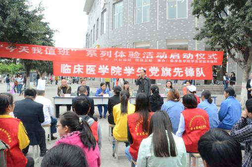 4月3日下午,由临床医学院党旗先锋队承办的“今天我值班”系列后勤体验活动启动仪式在伟德温江校区二食堂广场举行。临床医学院师生代表、后勤处,保卫处的部分工作人员参加仪式。