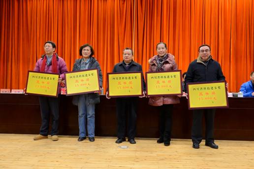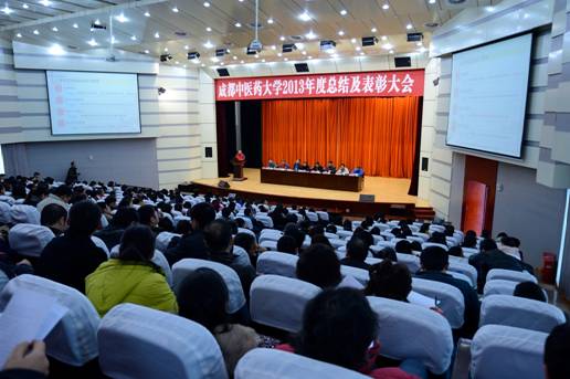 2013年学校事业取得长足进步,优异成绩来之不易,凝聚了广大师生员工的心血和汗水,会议对为学校发展做出突出贡献和成绩的集体与个人进行了集中表彰。学校胡天成、熊大经、李培等6名第二届“四川省名中医”,学校中医学实验教学中心等10个国家级、省级“本科教学工程”项目,江永等10名学校首届“十佳教学新秀”,学校国家科技进步二等奖、四川省科技进步特等奖等7项省级以上科技奖励项目,12个学生工作先进集体和78名个人,18位年度优秀处级干部等接受表彰,在主席台就坐的校领导为获奖集体与个人颁发了奖牌、证书和纪念品。