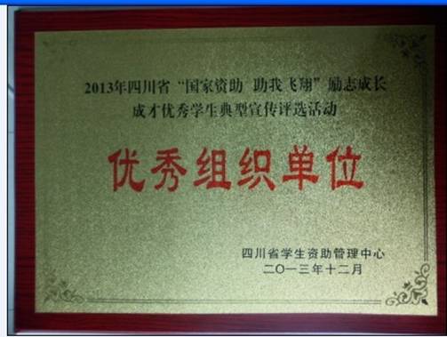 此次评选活动伟德学生资助管理中心因前期宣传充分、组织参评材料扎实,荣获四川省学生资助管理中心颁发的“优秀组织单位奖”。充分体现伟德学生资助管理中心不断深化学生资助工作的育人功能,加强对家庭经济困难学生的精神资助和能力培养的育人理念。一直以来,学生处学生资助管理中心在学校家庭经济困难学生领导小组和学生处的领导下,围绕“助困”、“扶志”、“强能”的多维发展目标,通过各类奖补助政策的深入落实,新生入学教育、励志教育、助学助研、各类培训工作的开展,切实为学生成长成才构建阳光育人环境,使学生在良好的校园人文、自然环境中陶冶情操,明智树德,全面健康发展。