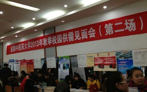 12月26日上午,2013年秋季校园供需见面会在百会堂举行。这是本学期第二场见面会,正大天晴药业集团、山东东阿阿胶股份有限公司、中国太平人寿、贵州省遵义县中医院、洪雅县洪川社区卫生服务中心等25家企事业单位参加了此次招聘会。