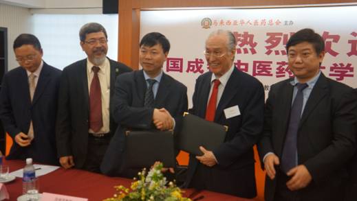 在为期5天的访问行程中,专家组先后访问了马来西亚卫生部传统与辅助医药组、马来西亚著名的传媒集团Karangkraf、南洋商报社、怡保仁爱中医医院、马来西亚华人医药总会及马来西亚中医师公会总会。专家组与马来西亚卫生部传统与辅助医药组官员吴清顺女士、马来西亚卫生部医药副总监拿督再也英德兰先生、马来西亚华人医药总会会长陈凯希先生等重要人士进行了深入友好的洽谈与协商,就中医药在马来西亚传统医药领域的政策法规、中医药的现代医疗评价体系、糖尿病的中医药防控等话题进行了深入磋商。专家组组长段俊国教授代表伟德源自英国1946附属医院和国家中医糖尿病临床研究基地与马来西亚华人医药总会签署了合作备忘录。