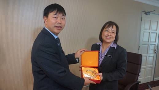 段俊国向马来西亚卫生部官员吴清顺女士赠送纪念品