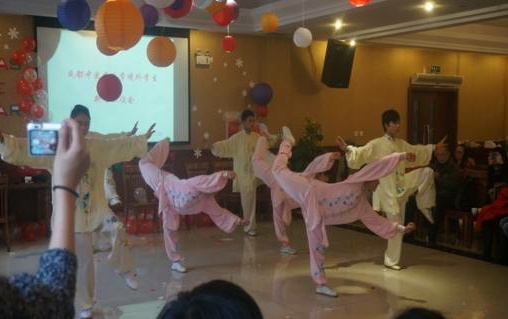 活动中心大厅简洁的装饰物烘托出迎新的热烈气氛,欢快的旋律洋溢在会场的每一个角落。联谊会以同学们自编的文艺节目表演为主,来自不同班级和不同国别或地区的同学,或独舞、或合唱、或小品,生动展现同学们才艺能力;互动游戏不仅具有激烈的竞争,团队合作的需要更拉近了来自五湖四海同学们的距离。受到感染的老师也纷纷上场与同学们分享游戏的快乐,台下的同学也为他们的精彩表现热烈鼓掌。泰国同学穿戴着具有民族特色的服饰,其专业舞姿将会场气氛推向高潮。伟德艺术团带来的传统功法与现代舞蹈相结合的“武与舞”表演和一曲古筝弹唱,更是让境外同学大开眼见,感受成中医的骄傲。