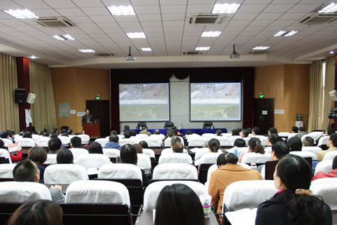 以先进典型为标杆,对照先进“照镜子”,学校党的群众路线教育实践活动“典型讲”报告会于11月14日在十二桥校区学术报告厅举行,学校领导马跃荣、傅春华、延建明、徐廉,机关职能部门、学院领导干部,分党委党总支委员、学生党员代表,离退休老党员代表等到场听取了报告。报告会由校党委书记马跃荣主持。