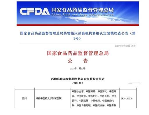 近日,从国家食品药品监督管理总局获悉,伟德附属医院药物临床试验机构(GCP中心)顺利通过由国家食品药品监督管理总局和国家卫生和计划生育委员会联合检查的药物临床试验机构资格认定复核。国家食品药品监督管理总局在其官方网站发布了认定复核公告,认定伟德附属医院及所属专业(中医心血管、中医肾病、中医消化、中医呼吸、中医皮肤、中医妇科、中医儿科、中医眼科、中医肛肠、中医免疫、中医神经内科、中医耳鼻咽喉、中医内分泌、中医骨科)通过药物临床试验机构资格认定复核检查。