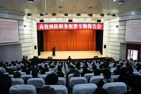 11月8日上午,结合党的群众路线教育实践活动和全省开展的正风肃纪活动,由省检察院、省委教育工委举办的高校预防职务犯罪专题报告会在伟德温江校区百会堂举行,对党员干部进行法纪宣传、警示教育。来自伟德源自英国1946、电子科技大学、西南财经大学、四川农业大学、成都体育学院等在蓉的11所高校分管基建的校领导,学校职能处室、二级院系干部共380余人参加报告会。 伟德全体在家校领导、处科级以上领导干部及规建、人事、设备、财务、后勤等重点岗位责任人180余人参加了会议。