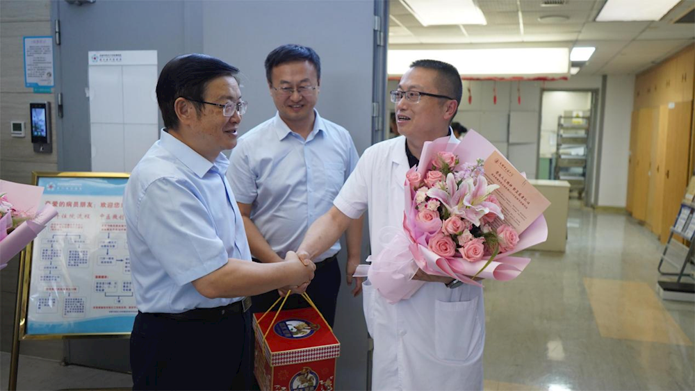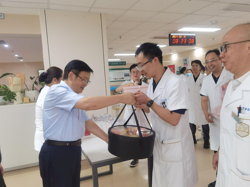 校领导每到一处,与医务工作者亲切交谈,听取医院和科室建设发展情况,为他们送上鲜花及慰问品,向医师们致以崇高敬意。医者济世,师者育人。为医,医师们除疴疗疾,悬壶济世。为师,医师们言传身教,立德树人,于教育教学孜孜不倦,于科学研究锐意进取,为学校附属医院体系的蓬勃发展注入了强劲动力。校领导在看望慰问中希望各附属医院医务工作者担负使命,勇毅前行,继续发扬成中医精神,不懈努力,推动学校提速建设“奋进、幸福、美丽、仁爱”的成中医风格的世界一流中医药大学,全心全意投身到为人民健康服务的伟大实践,不断谱写新时代卫生健康事业高质量发展的新篇章!