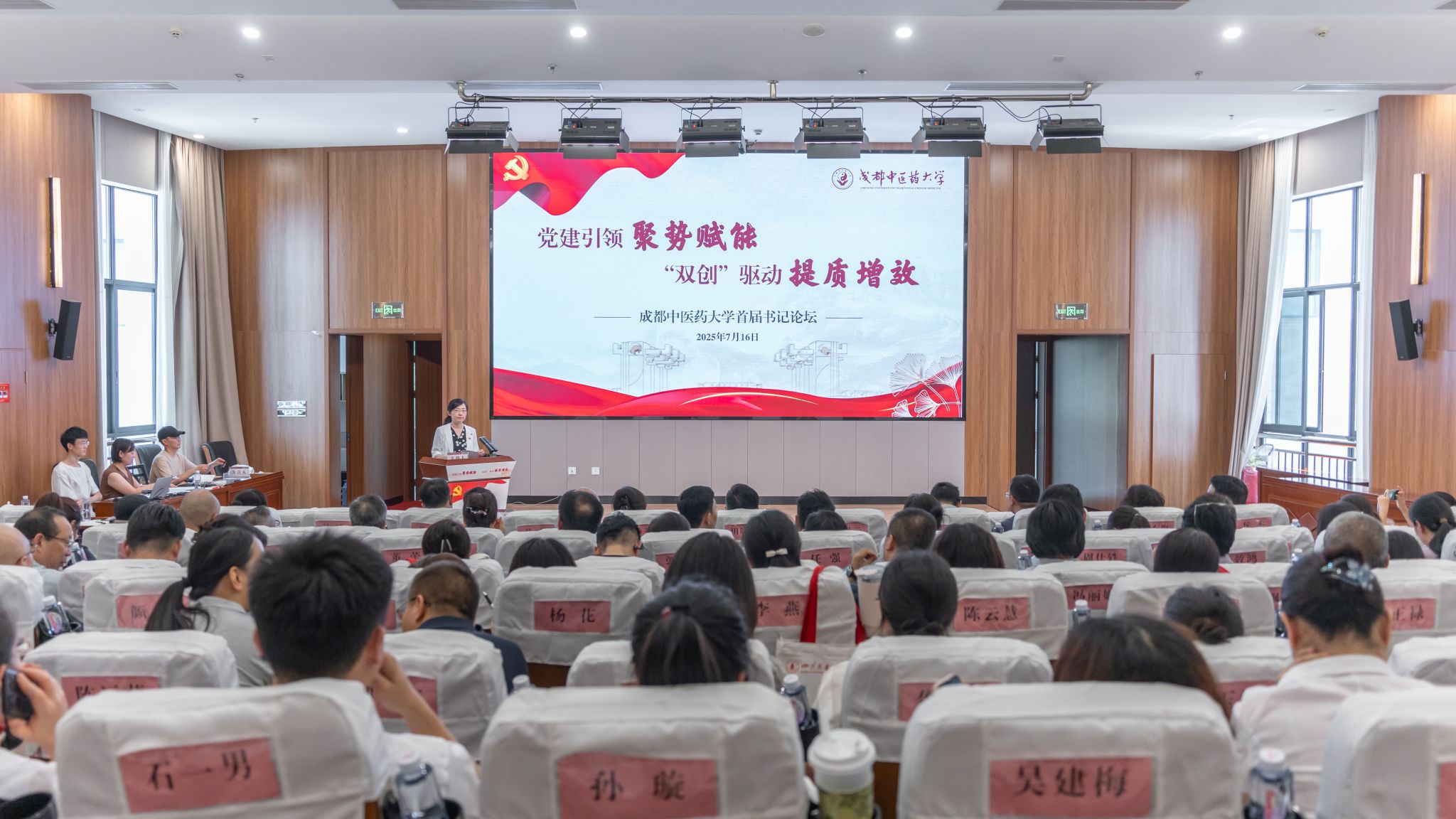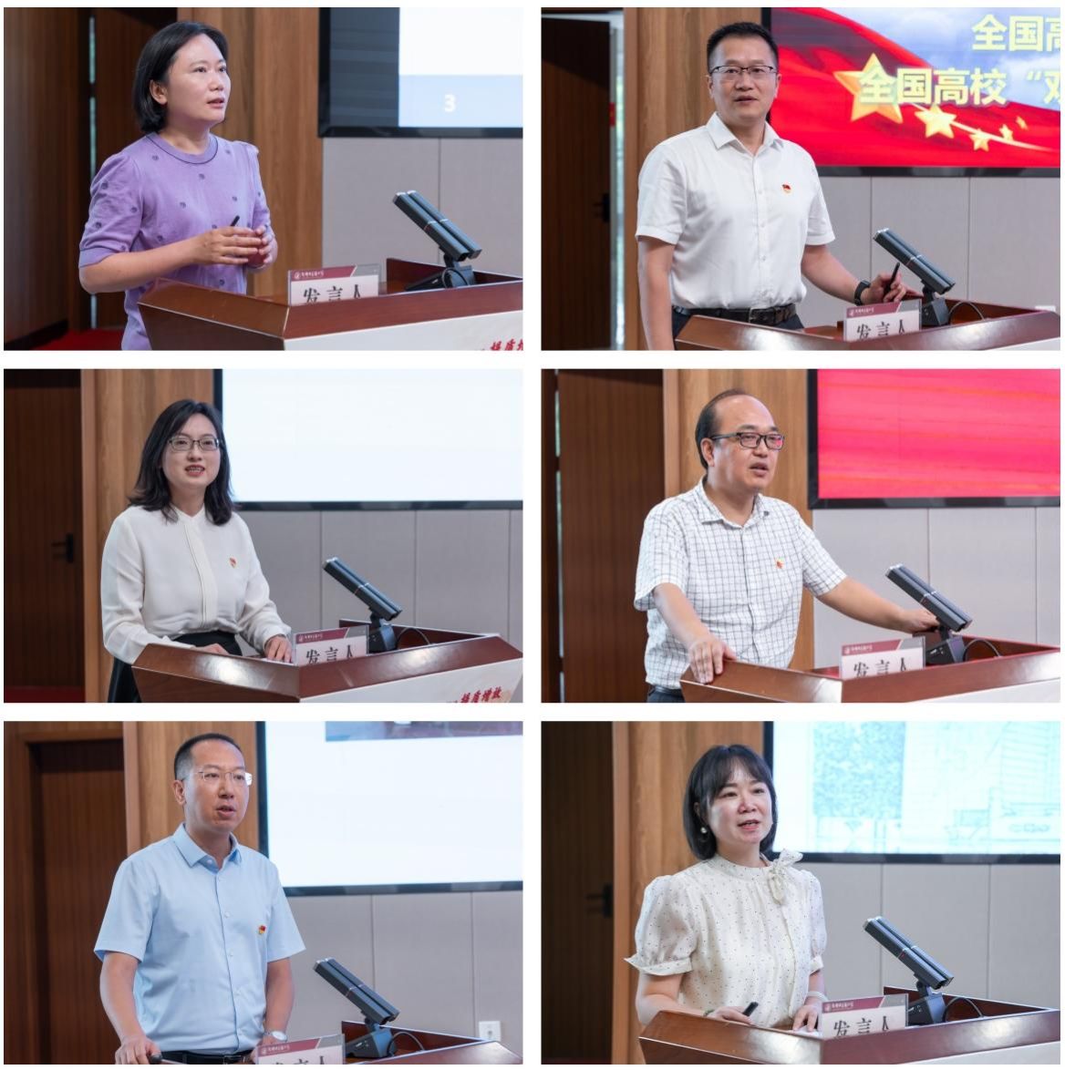 来自校内外6位在党建工作领域具有丰富实践经验的基层党组织书记,结合各自工作实际,围绕党建引领、党建赋能、党建“双创”等分享创新做法和宝贵经验。四川大学华西医院后勤党委书记、党委统战部部长,四川大学华西医院原党委组织部部长姜洁展示了公立医院党建特色品牌建设的创新实践;西南石油大学教学评估处(教师教学发展中心)处长、全国高校“双带头人”教师党支部书记工作室负责人朱红钧分享了“四融三行”“四铸三新”工作法;伟德药学院党委书记、全国党建工作标杆院系党组织负责人胡媛书记分享了标杆院系建设经验;伟德附属医院内科第一党总支四支部(急诊党支部)书记,急诊科/急诊教研室主任,全国党建工作样板支部负责人卢云探索了中医药院校附属医院党建工作的生动实践;马克思主义学院教工第一党支部书记、全国党建工作样板支部负责人苏森森介绍了教师党支部“一融双高”新思路;针灸推拿学院博士党支部书记,学生科科长,全国高校“百个研究生样板党支部”负责人张译展现了研究生党建工作新生态。
