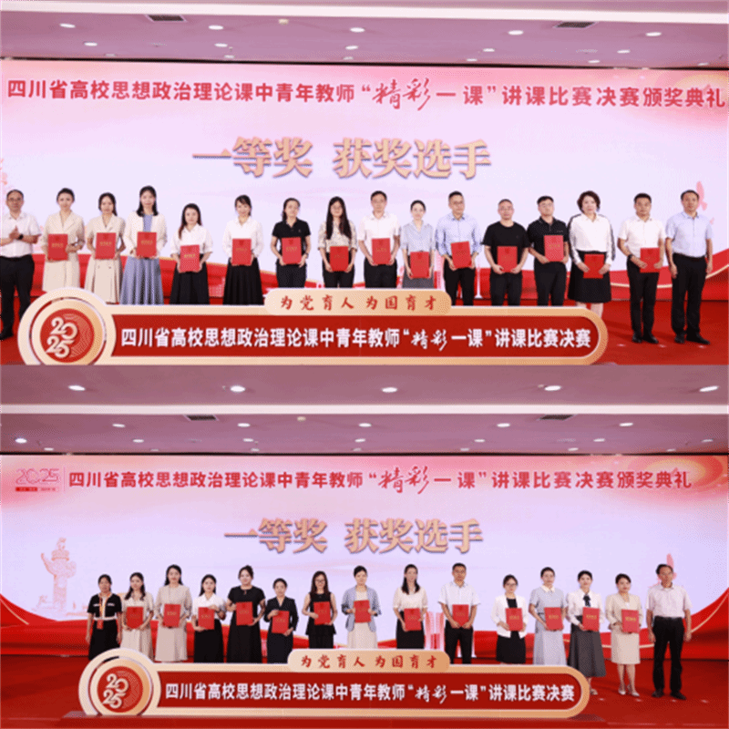 四川省高校思想政治理论课中青年教师“精彩一课”讲课比赛由四川省委教育工委、四川省教育厅主办,每两年一届,是全省高校思政课教师交流教学经验、展示风采的重要平台,权威性和影响力极高。本次决赛对标全国高校思政课教学展示活动,是历届比赛中准备时间最短、规模最大、难度最大的一次。比赛历时2个多月,经过初赛、复赛环节,全省133所高校550名选手中的182名教师晋级决赛,伟德共4位教师进入决赛。决赛采用现场讲授的方式,选手随机抽取所报3大教学专题(含9个知识点)中的1个知识点,进行8分钟无多媒体辅助的课堂教学展示,对教学能力要求极高。伟德4位教师顶住压力,沉稳发挥,凭借扎实的基本功,展现出优秀的教学实力。