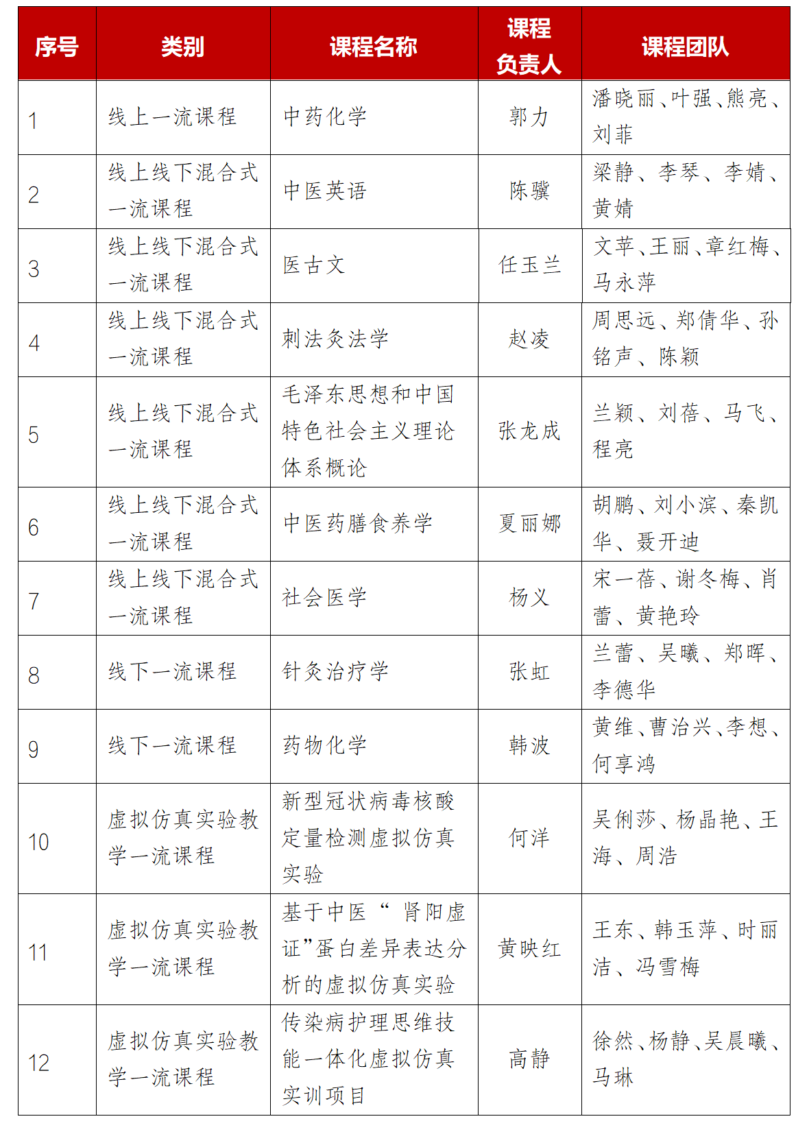 近日,教育部发布《关于第三批国家级一流本科课程认定结果的公示》,本批次伟德新增《中药化学》等12门国家级一流课程,其中,线上课程1门、虚拟仿真一流课程3门、线上线下混合式课程6门、线下课程2门,为入选第三批国家级一流本科课程最多的中医药高校,实现所有国家级一流专业全覆盖国家级一流课程。截至目前,伟德累计有国家级一流本科课程30门,位列全国中医药高等院校首位。
