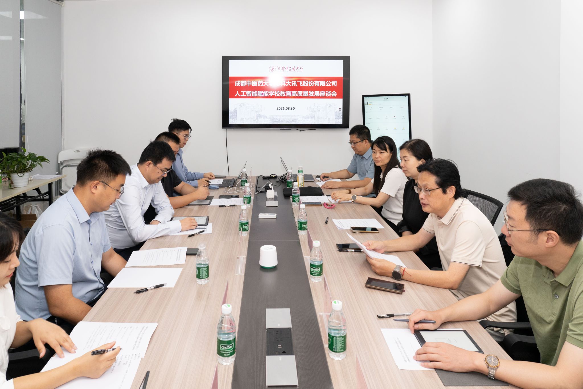 8月30日上午,学校与科大讯飞股份有限公司在温江校区召开人工智能赋能学校教育高质量发展专题座谈交流会。学校校长曾芳、科大讯飞副总裁、高教事业部总经理陈红斌及科大讯飞相关负责人出席座谈会,会议由智能医学学院/信息与教育技术中心党委书记、副院长温川飙主持。