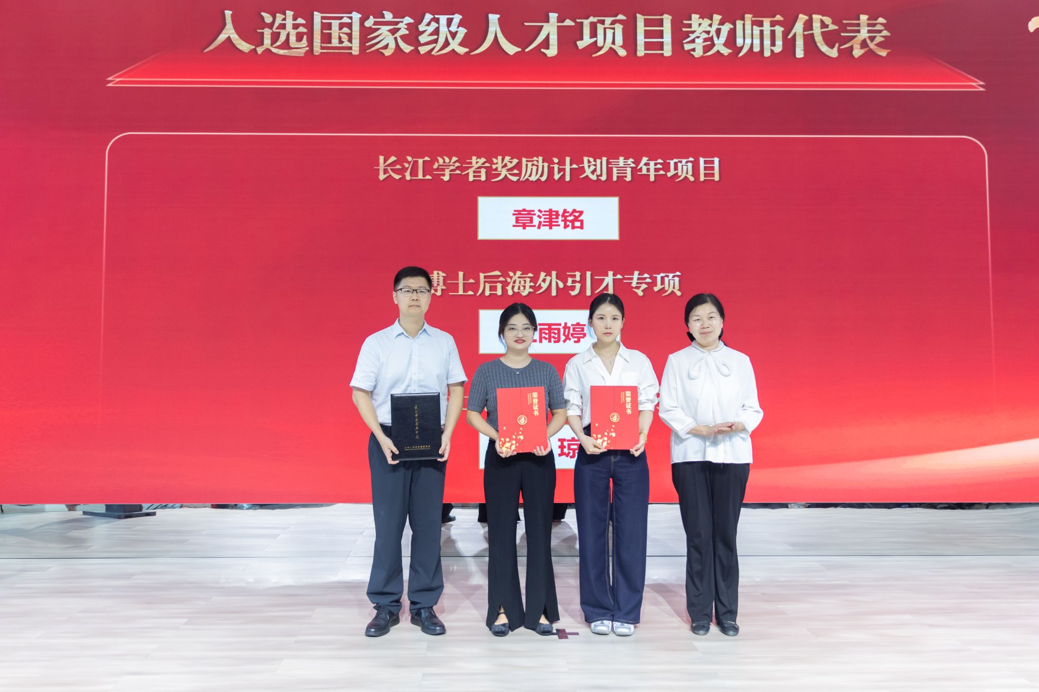 曾芳为“入选国家级人才项目”教师代表颁奖
