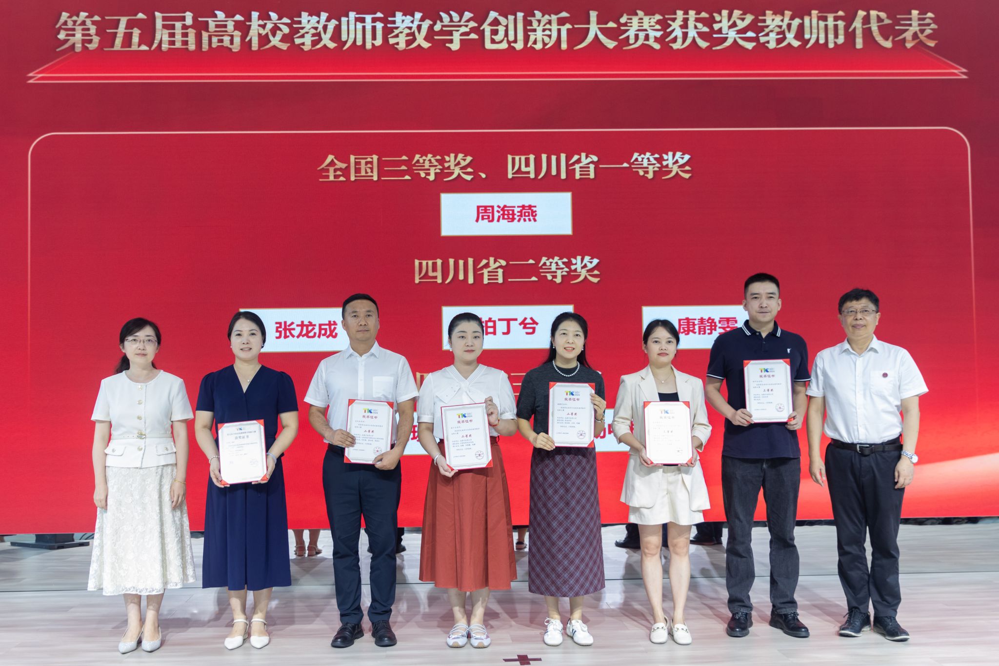 党委宣传部部长张希、党委组织部部长赵凌为“第五届高校教师教学创新大赛”获奖教师颁奖