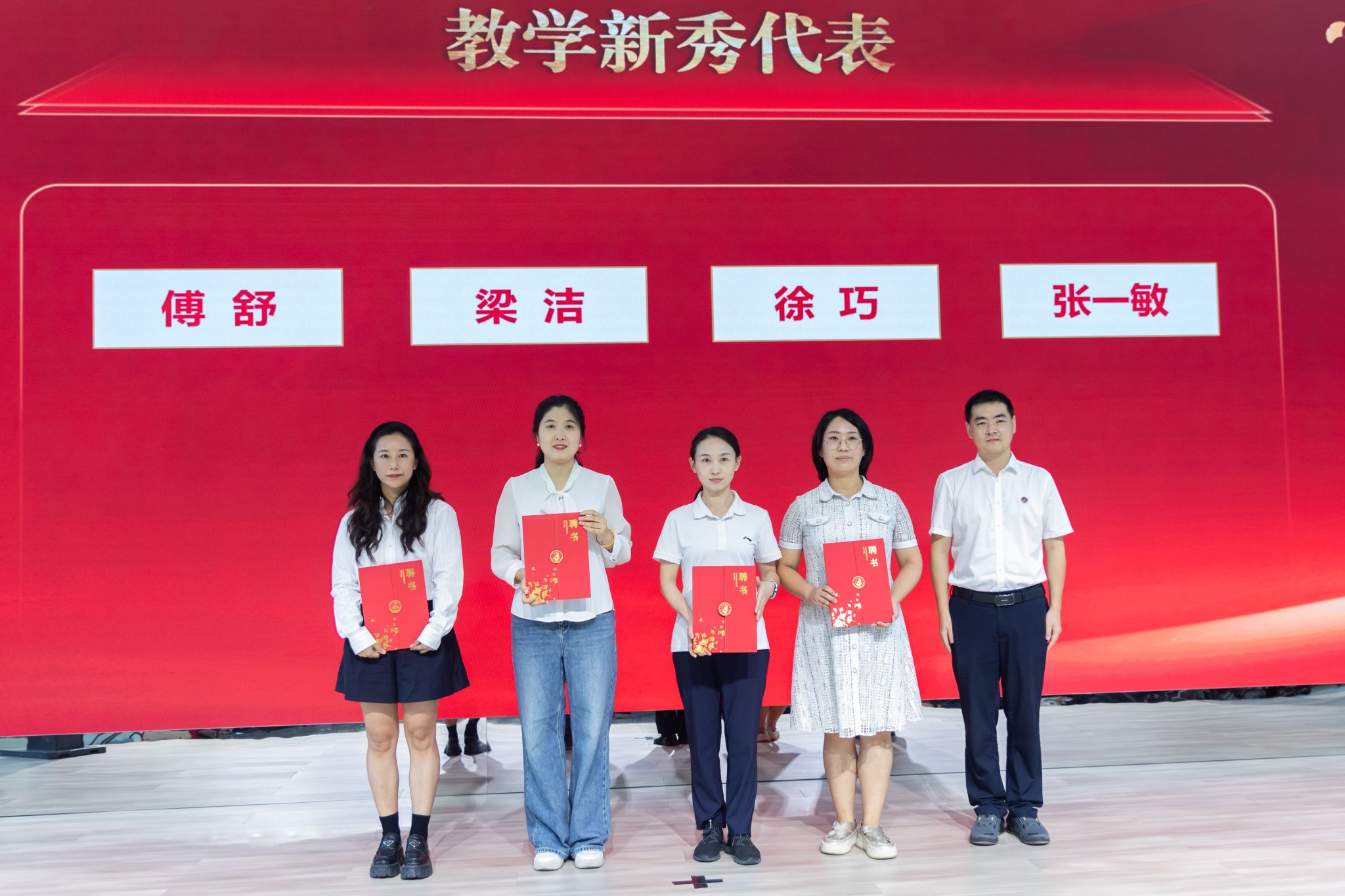 科技处副处长(主持工作)张定堃为“教学新秀”代表颁奖