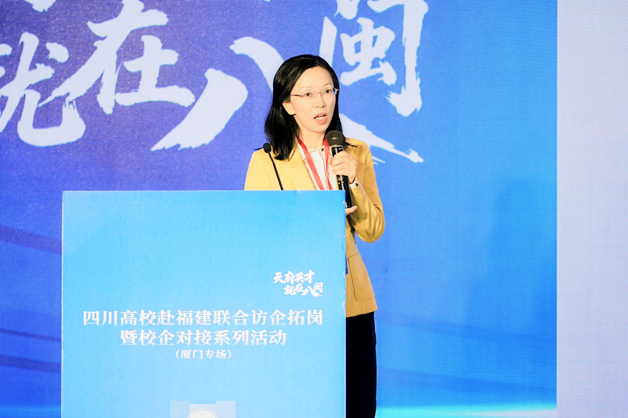 10月20日,厦门专场推介会举行,四川省40所高校及厦门市60余家企业代表到场参会。作为四川省3所推介高校之一,杨静在大会作学校推介发言,她系统介绍了伟德厚重的办学历史、学科专业人才优势、国家级教学科研临床平台建设、人才培养成效、就业育人等情况,全面呈现了学校的教学、科研、医疗、人才、文化、服务社会等状况及合作愿景,希望此次来闽与福建医药健康领域相关单位深化合作,并邀请福建省用人单位来校选才,助力健康中国与中医药事业高质量发展,获得在场用人单位高度关注。