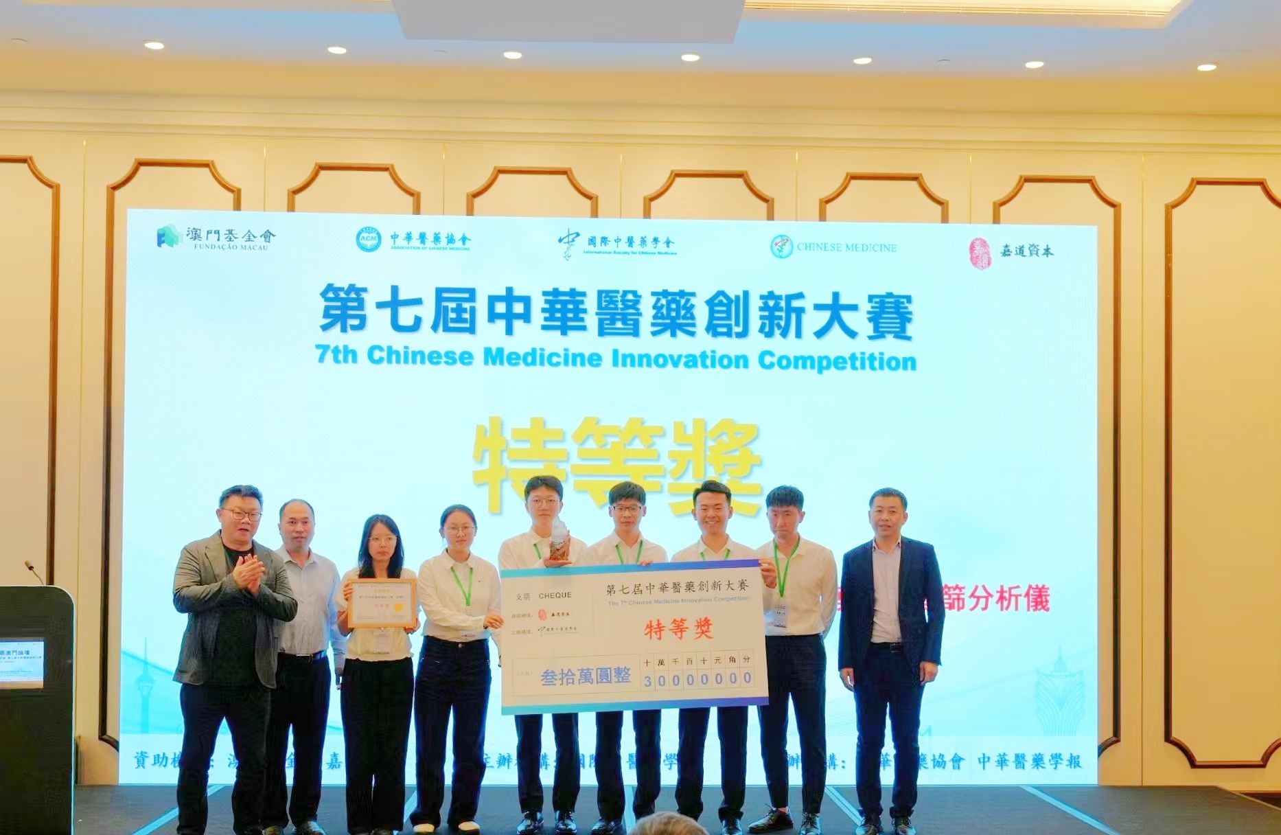 10月27日,第七届中华医药创新大赛在澳门落幕。由伟德陈士林院士团队与西安交通大学贺浪冲教授团队联合组建的参赛项目“本草智筛——多靶标细胞膜色谱智筛分析仪研发”,荣获大赛第一名(特等奖,奖金三十万元)。