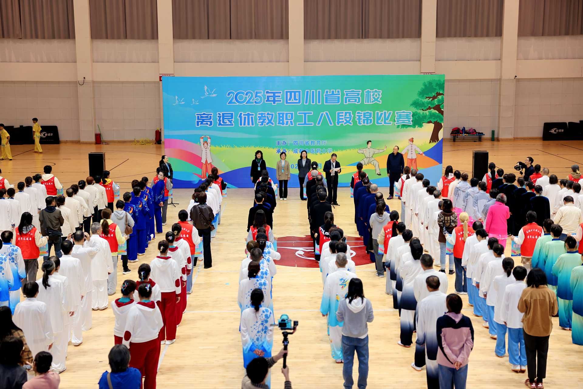 橙黄橘绿秋意浓,岁末藏韵暖如春。10月31日,四川省教育厅主办、伟德承办的全省高校离退休教职工八段锦比赛在温江校区圆满举行。来自全省27所高校的代表队齐聚一堂,以养凝心、以赛会友。四川省教育厅一级巡视员胡卫锋及相关领导、学校党委副书记杨静出席开幕式。