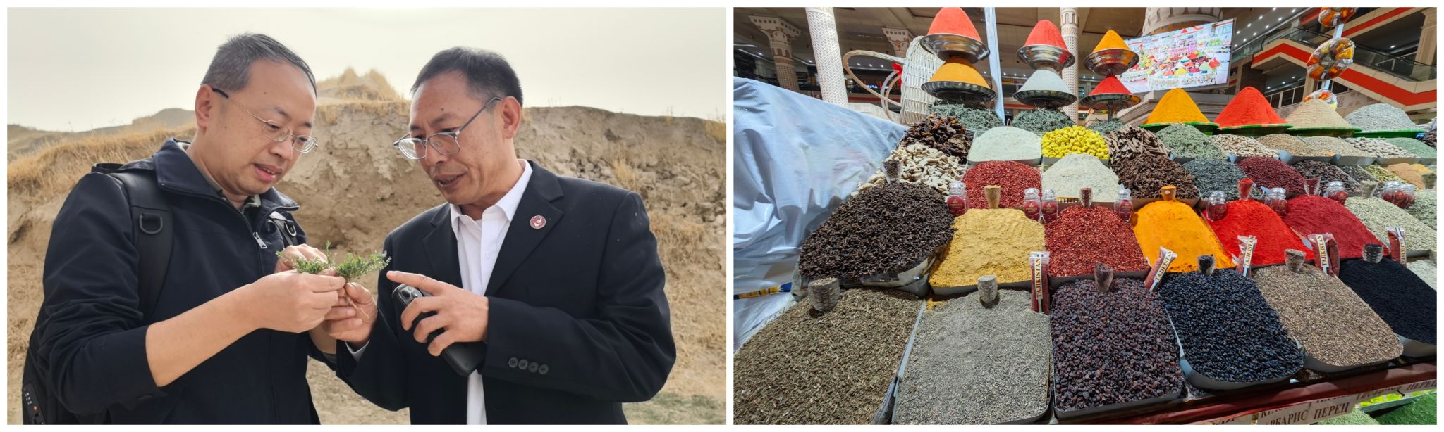 在塔期间,严铸云教授带领团队,继续开展塔吉克斯坦药用植物资源的鉴定和识别工作。在塔吉克斯坦山区及国家植物园,共鉴定金银花、大蓟、车前草、牵牛等药用植物近百种;在杜尚别大巴扎市场,调研塔吉克斯坦的“药食同源”香料品种及用途,鉴定得到西红花、丁香、胡椒、姜黄等香料30余种,为后续制定塔吉克斯坦传统药用植物图典及开展相应的资源普查奠定了基础。